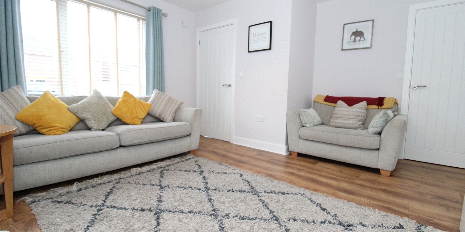 Inside, the accommodation is thoughtfully laid out. The ground floor comprises a welcoming entrance hallway leading into a generous living room, perfect for everyday comfort. To the rear, a contemporary dining kitchen provides a fantastic social space, complete with patio doors that open directly onto the garden, allowing plenty of natural light to flood in. A separate utility room and convenient downstairs WC complete the ground floor.