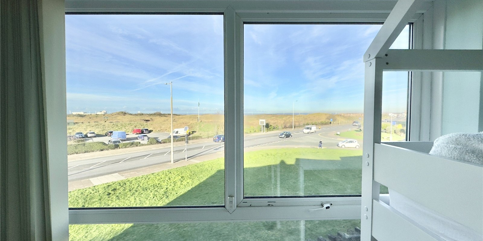 This remarkably spacious top floor apartment offers an unexpectedly generous layout, with standout panoramic views that truly set it apart. Both the main double bedroom and the substantial open-plan living and dining room look directly across the beautifully manicured fairways of Wallasey Golf Course, with the vista stretching outwards towards the coastline.