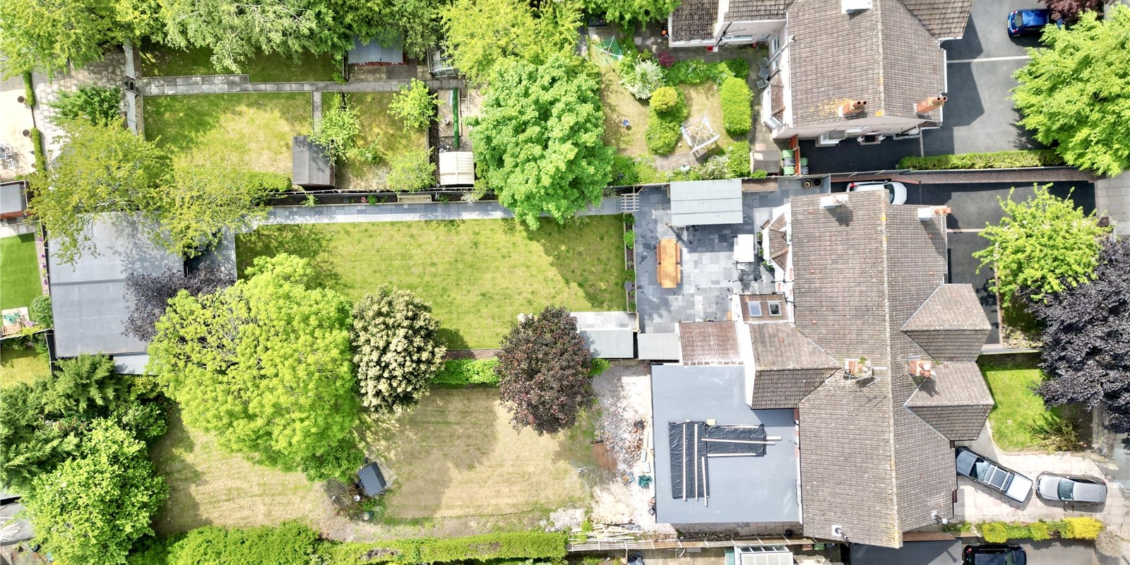 A pathway then stretches the length of the garden, making way for a show-stopper of a garden bar with ample floor space for a full-size snooker table, boasting a custom bar and entertainment area.