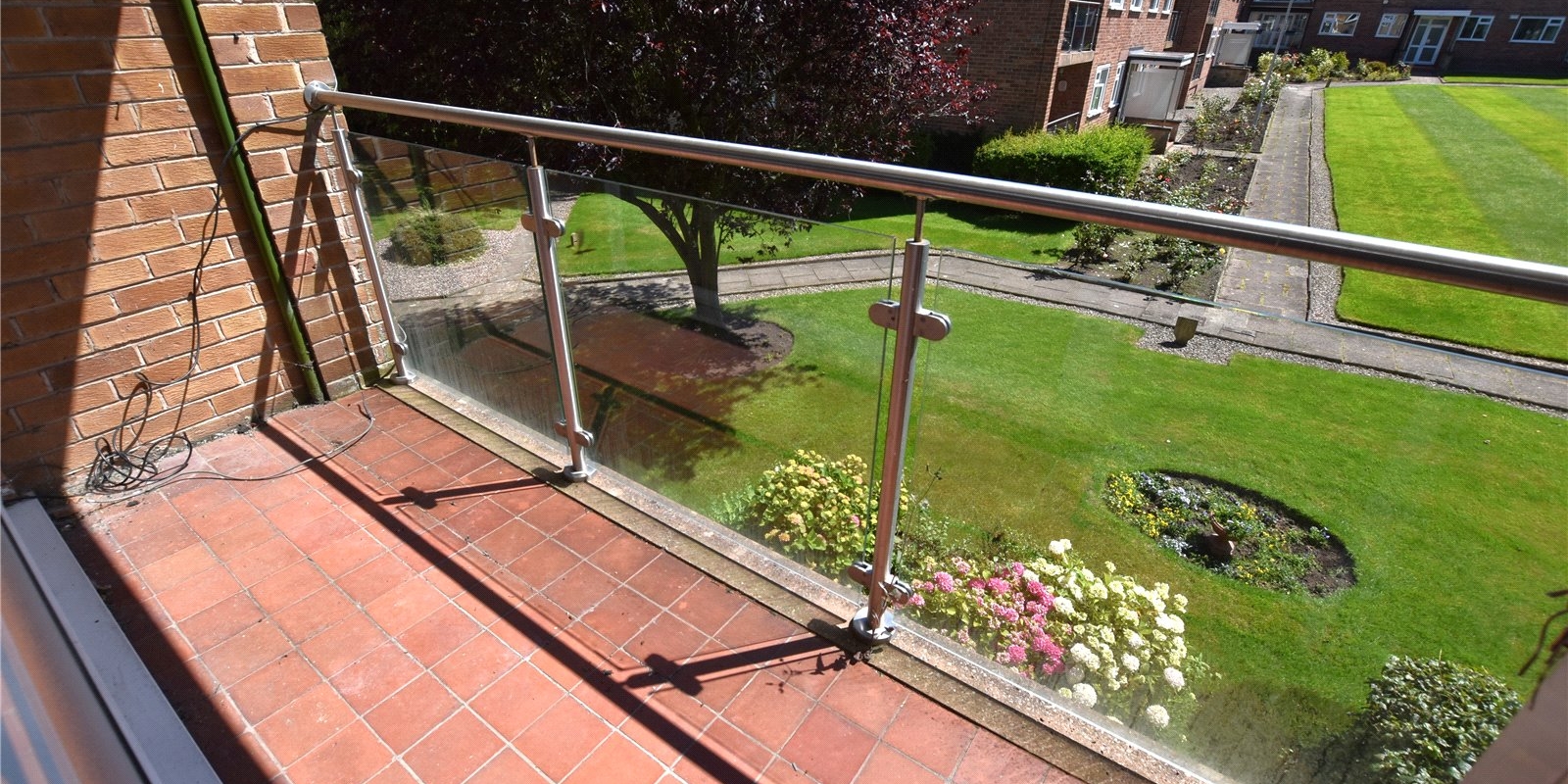 The highlight of the apartment is the extensive lounge/diner, which boasts dual-aspect windows, filling the room with natural light and creating a bright and airy atmosphere. A door opens onto the front balcony, an ideal spot for enjoying morning coffee or evening sunsets while watching the birds play in the open green space and trees.
