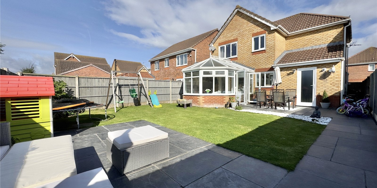 Externally, the house boasts a well-maintained front garden with a tarmac driveway providing off-road parking for multiple vehicles. The rear garden, predominantly laid to lawn with inviting patio areas, ensures privacy and tranquility, making it perfect for outdoor relaxation and entertaining. With an open aspect to the rear, this space is truly delightful, and viewing is highly recommended to fully appreciate the style and charm of this lovely family home.