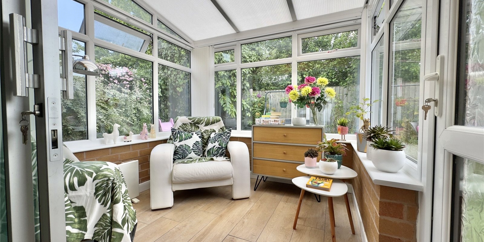 The conservatory, overlooking the well-maintained rear garden, provides the perfect setting for family dining, a playroom, or a quiet retreat to relax in natural light. The ground floor layout is practical, versatile, and perfect for modern living.