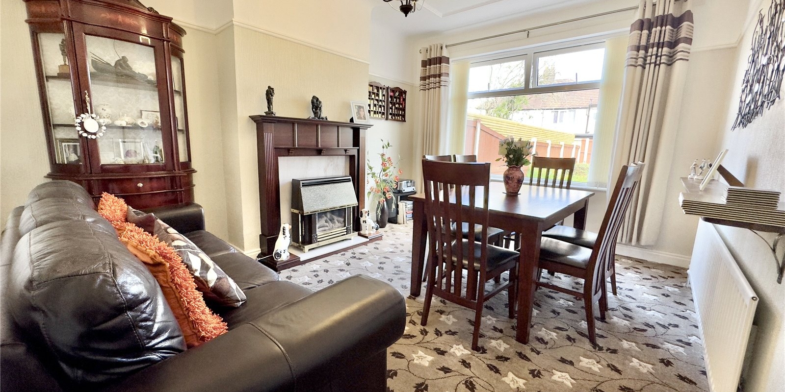 On entering the home, you're greeted by a bright and airy hallway that sets the tone for the generous living space throughout. To the front, a charming living room features a beautiful bay window that floods the space with natural light, complemented by a focal fireplace for cosy evenings. At the rear, the separate dining room also enjoys a fireplace and boasts a large window with views over the garden—ideal for family meals or entertaining.