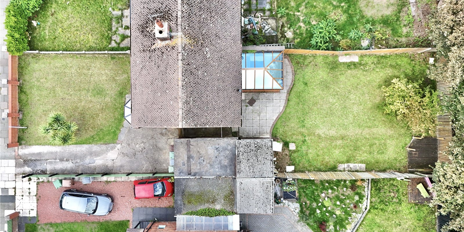 Externally, the property is set back from the road with a lawned front garden and a driveway providing off road parking for mulitple vehicles. The rear garden is perfect for entertaining and family enjoyment, with a paved patio, a well-maintained lawn, and a raised decked seating area. A detached garage pus a workshop provide additional storage, catering well to hobbyists or practical needs.