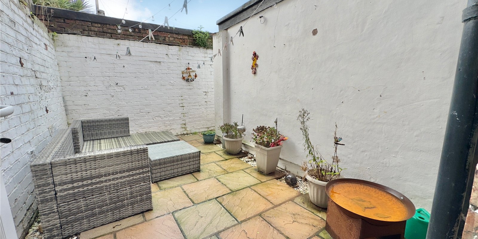 The breakfast kitchen features stylish cream cabinetry for a modern, elegant feel, complete with integrated appliances, including a dishwasher, for everyday ease. The lounge centres around a log burner, offering the perfect cosy retreat to relax and unwind. Outside, a private courtyard garden provides a peaceful outdoor escape.