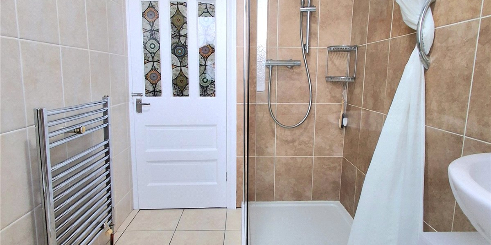Ascending to the first floor, the home continues to impress with three well-proportioned bedrooms. Two are generous doubles, each bright and airy, while the third offers a comfortable single room perfect for a child, home office or guest space. The recently updated shower room features a contemporary three-piece suite, complete with quality tiling and a clean, modern finish that reflects the wider standard of refurbishment throughout the property.