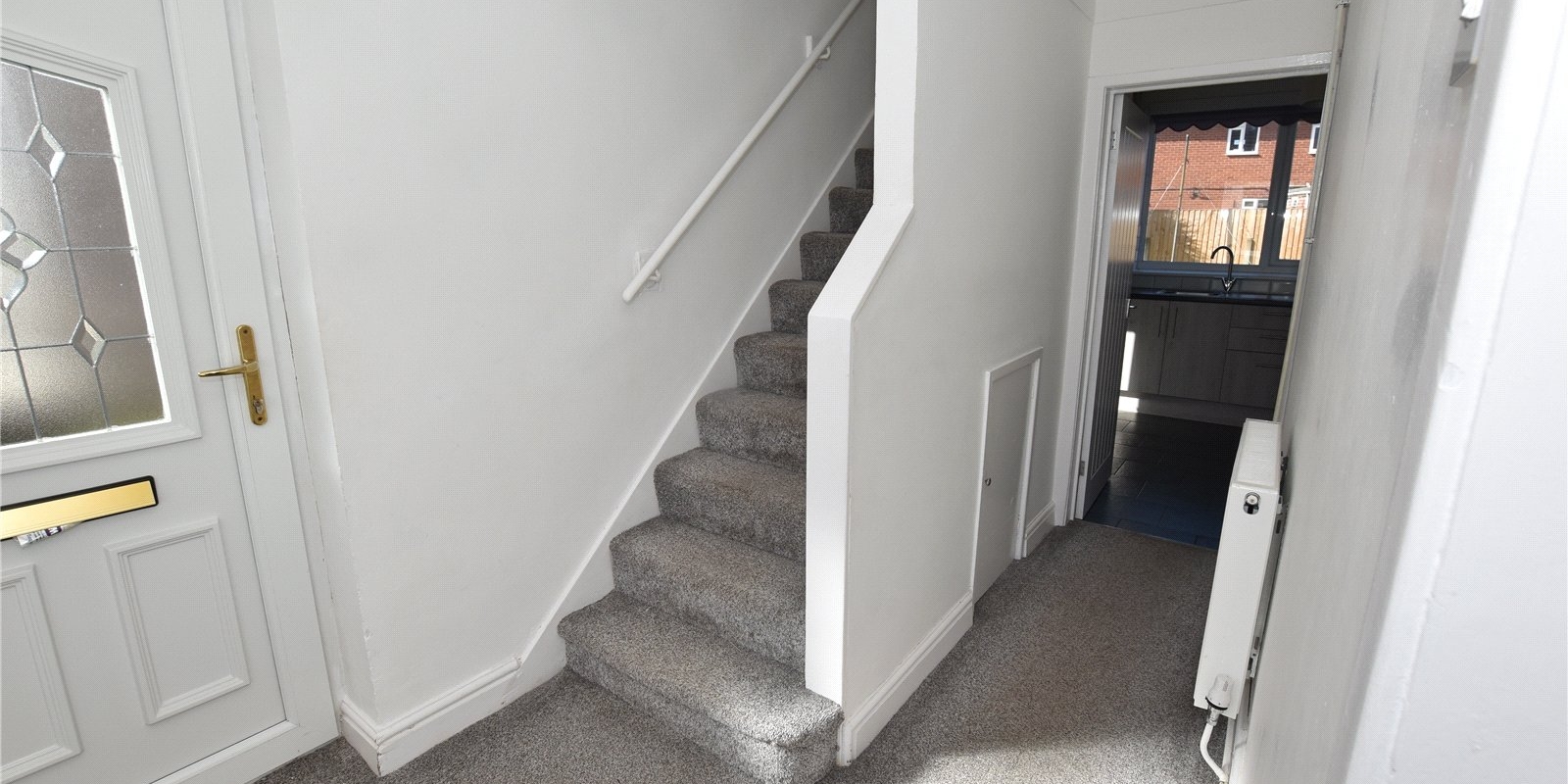 This well presented three-bedroom end terrace property is set back from the road, offering a peaceful and private position while benefiting from convenient bay parking and a well-maintained front garden.