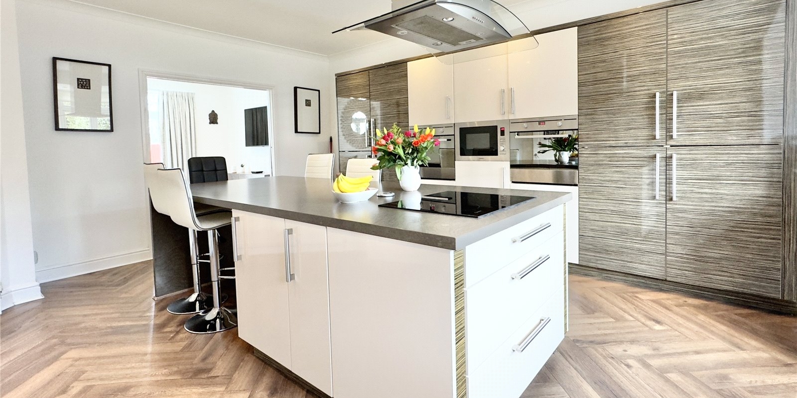 The property consists: gated driveway with ample room for multiple vehicles, vestibule entrance, a large entrance hall with cloak room, a downstairs WC, two separate reception rooms; both with access to the rear garden, and a large kitchen with a huge centre island ideal for family life and dining.