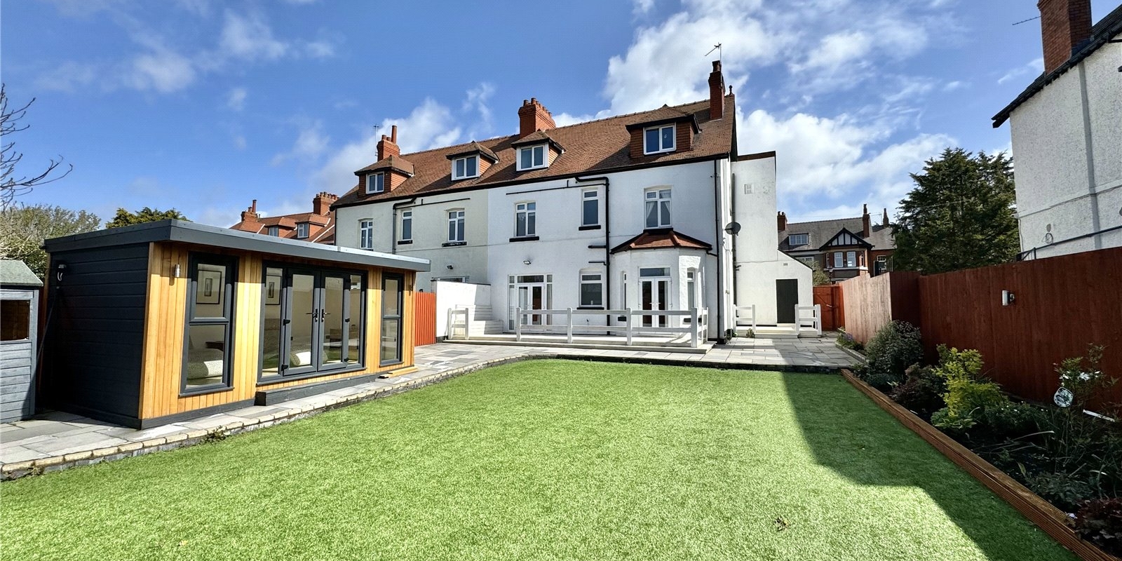 Externally, the property has side access from the stunning front driveway to the rear garden, finished with slate paving, an artificial laid lawn, an outbuilding utilised as a relaxing summer house, and a storage room in the extension to the side of the home.
