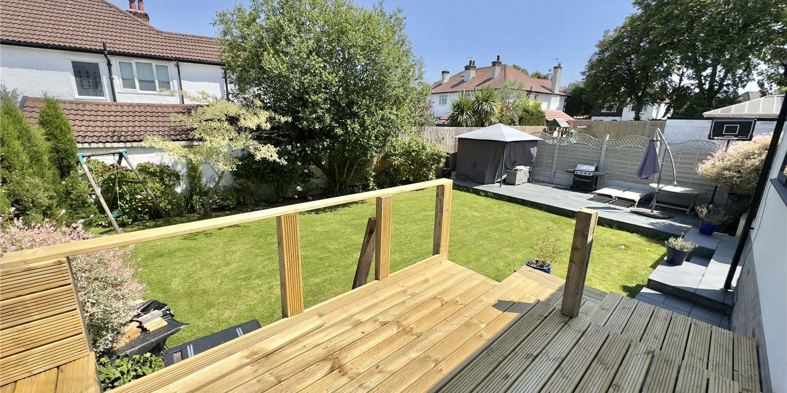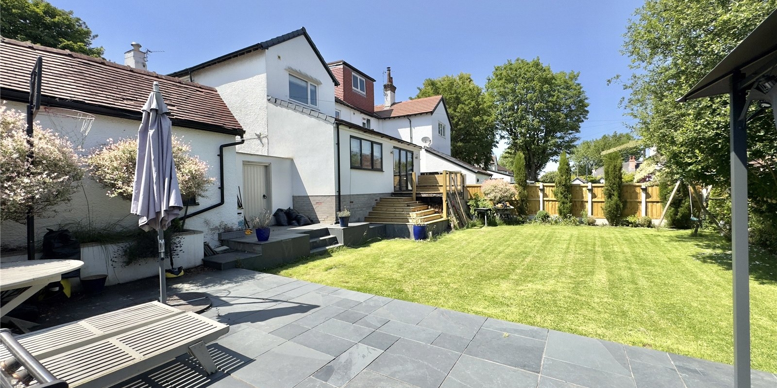 Outside, enjoy a private and beautifully landscaped rear garden complete with decked and patio areas, ideal for alfresco dining. A detached garage and spacious driveway offer off-road parking for several vehicles.