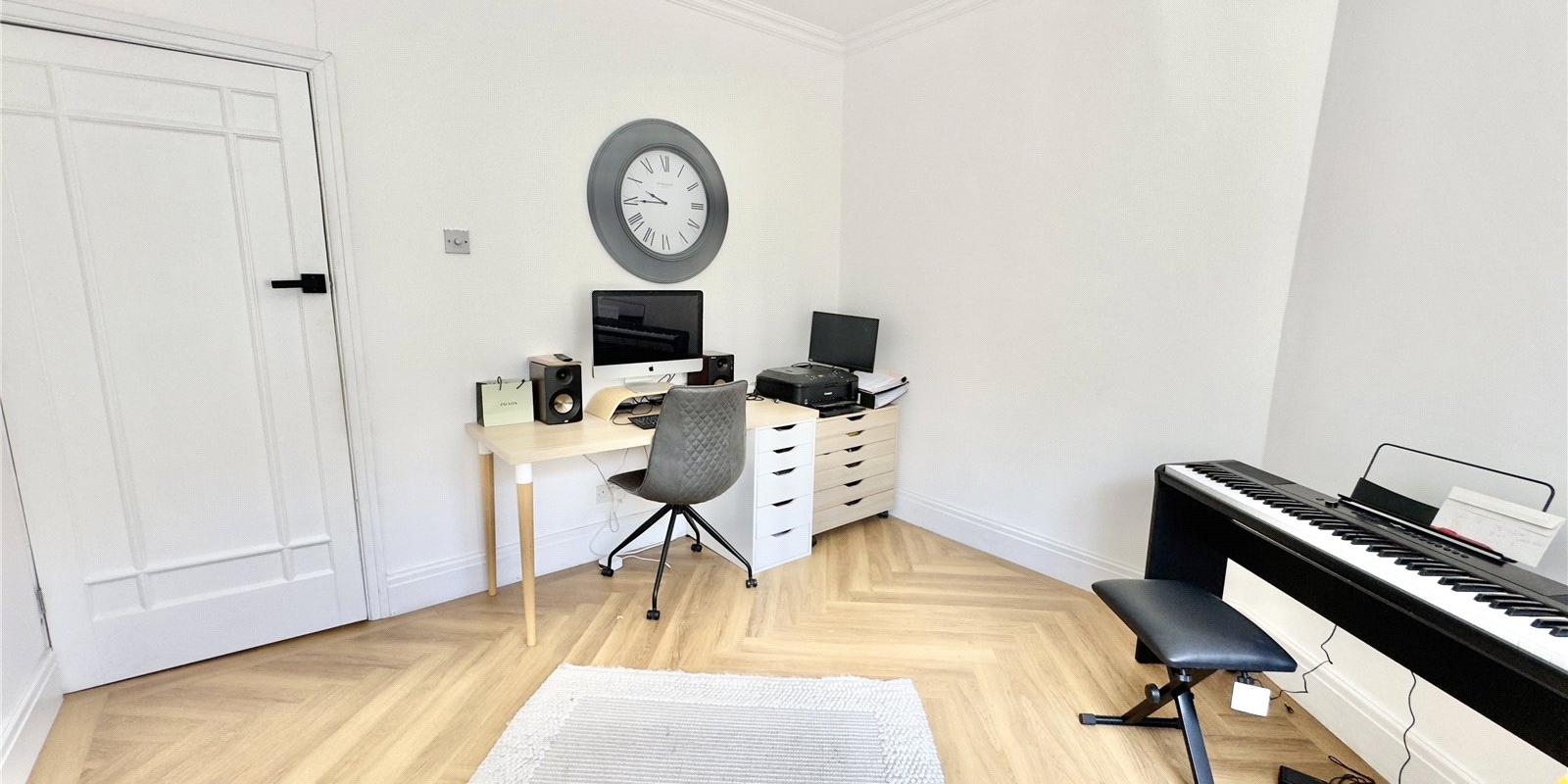 A separate front reception room with a beautiful bay window provides an ideal family lounge or playroom, while upstairs hosts four generously proportioned double bedrooms, including a third bedroom with fitted wardrobes. The sleek, modern bathroom boasts a contemporary three-piece suite.