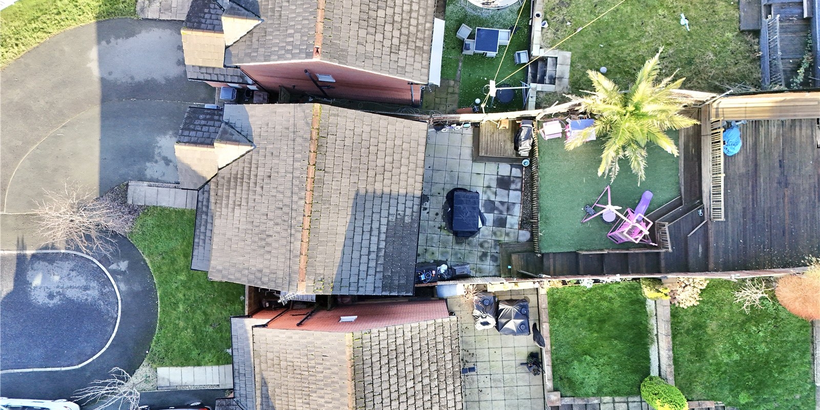 Externally, the property offers a driveway to the front, while the impressive rear garden is arranged over three tiers, including a patio seating area, an astro-turfed level ideal for children, and an upper decked area complete with electricity and Wi-Fi connections—perfect for entertaining or home working outdoors.