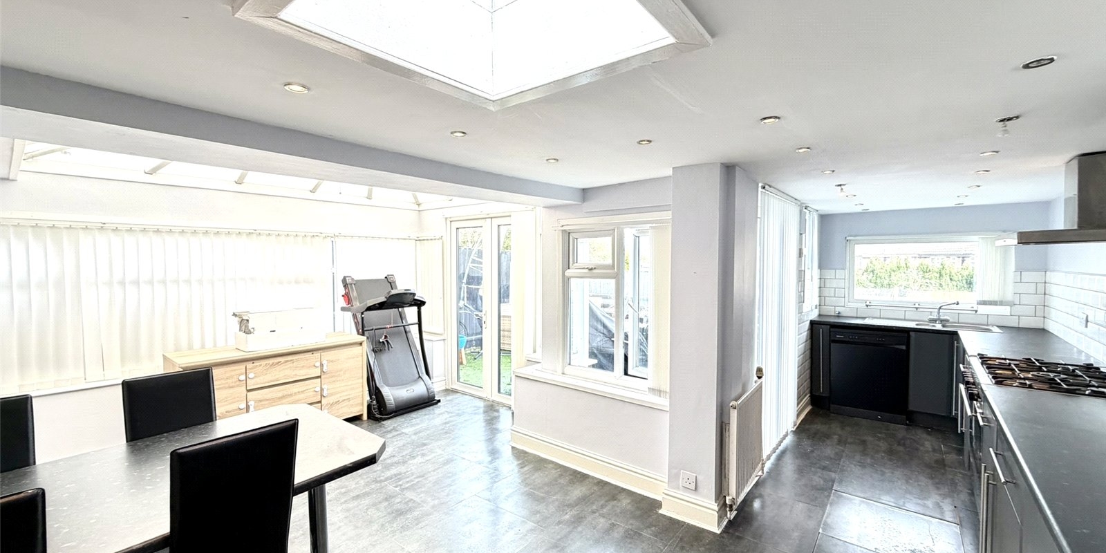 houghtfully reconfigured to create a stunning open plan living kitchen dining area, the property is perfectly suited to modern family life and entertaining. The ground floor further benefits from a bright through lounge and a large conservatory overlooking the rear garden, providing versatile reception space.