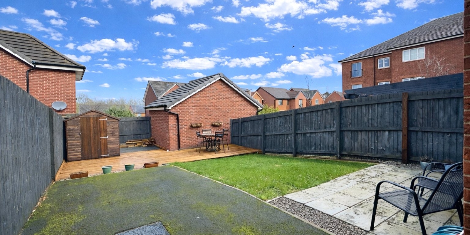 The first floor continues the sense of quality, with a generous master bedroom benefitting from a stylish en-suite shower room, two further well-appointed bedrooms and a contemporary family bathroom. Externally, the property is complemented by a neatly maintained front garden and a private driveway providing off-road parking for several vehicles. The enclosed rear garden offers a decked seating area, perfect for alfresco dining and summer evenings.