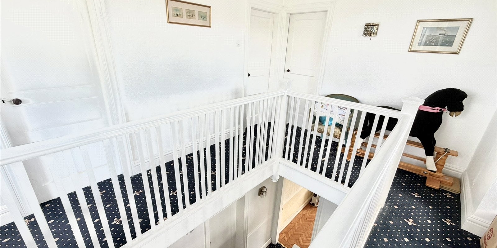 To the first floor, a gallery-style landing leads to three well-proportioned bedrooms and additional storage space. Externally, the property continues to impress with a large driveway, front garden, detached tandem garage and workshop, while the rear boasts a mature and private garden space.