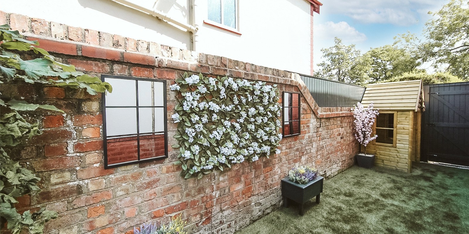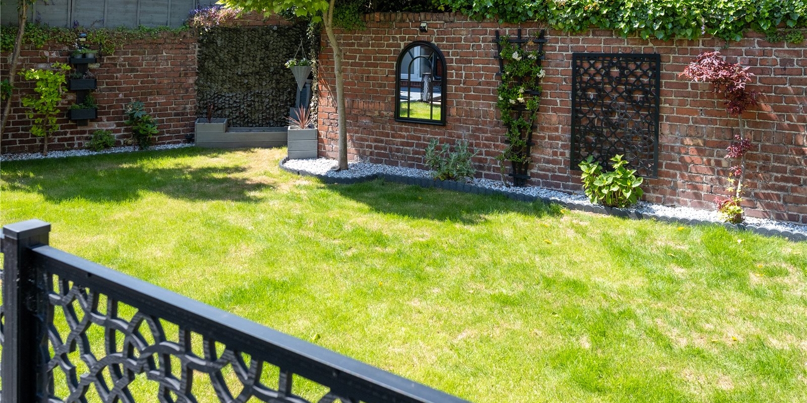 The rear garden is bathed in sunlight throughout the day.