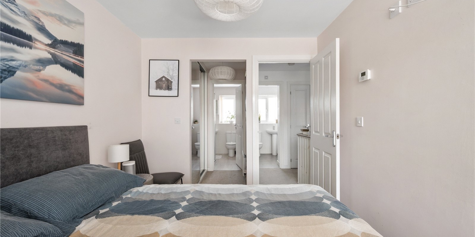 Upstairs, the first floor boasts three generous double bedrooms, including a master suite with a dressing room and en-suite shower room, along with a stylish family bathroom.