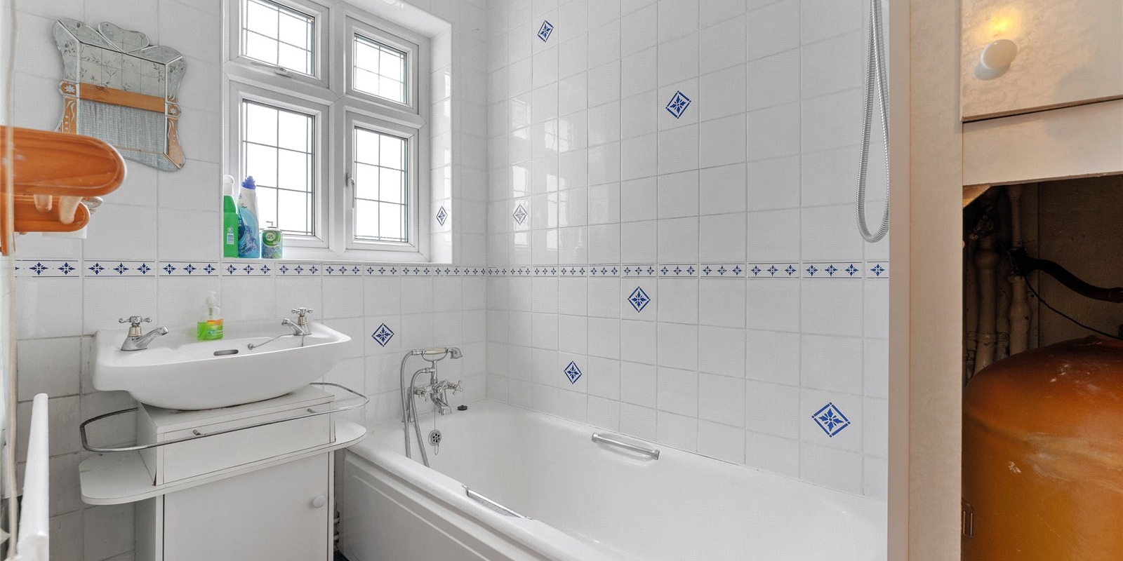 The family bathroom features a contemporary two-piece white suite, while a separate WC adds convenience for busy households. A UPVC window provides natural light and ventilation.