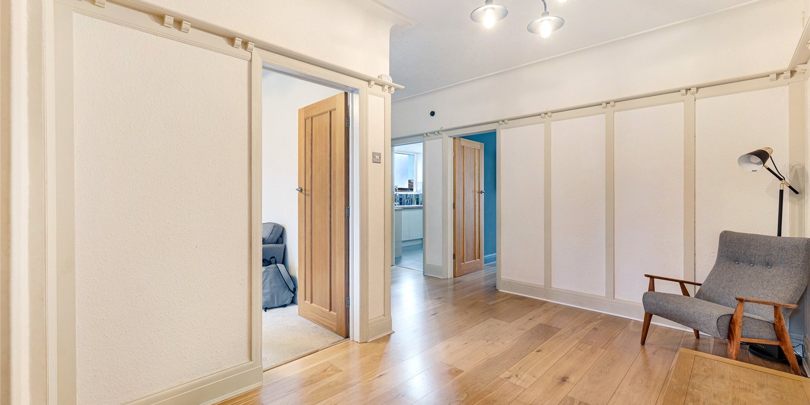 The property welcomes you with a large, characterful entrance hallway, instantly setting the tone with its sense of space and light. To the front is a beautiful reception room, featuring a gas fireplace and large windows that flood the room with natural light, a perfect space for relaxing or entertaining.