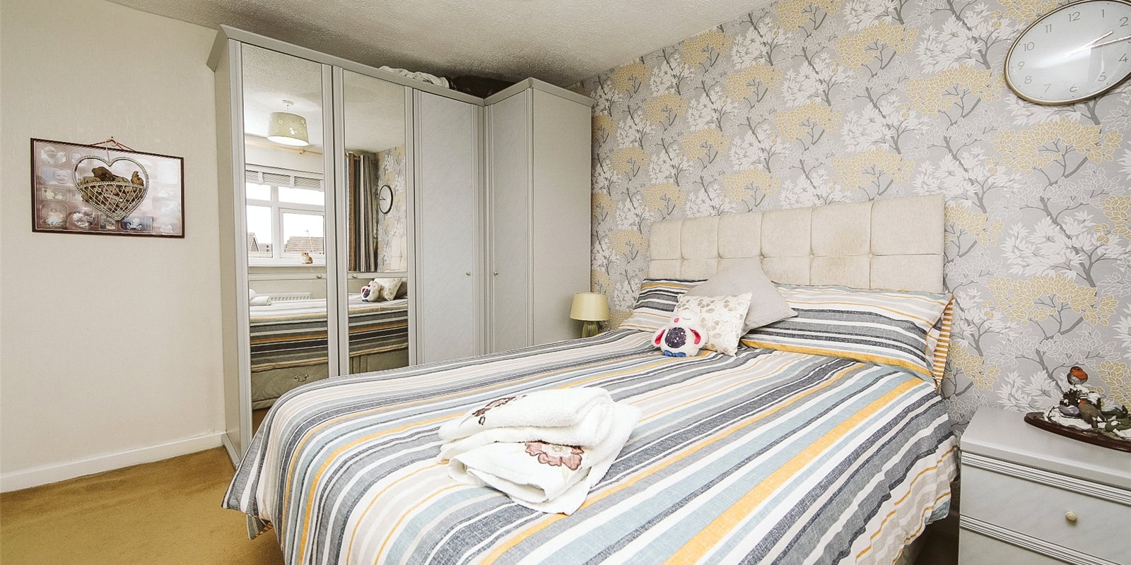 Upstairs, the property boasts three comfortable bedrooms, with the master featuring fitted wardrobes. The family bathroom is a particularly impressive space, fitted with both a bath and a separate shower, providing practicality for busy households.