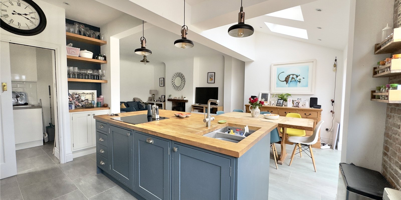 To the rear, the property has been thoughtfully extended to create a superb open-plan kitchen and dining area, forming the true heart of the home. Designed with both style and functionality in mind, the kitchen benefits from underfloor heating and an instant hot water tap, alongside ample storage and workspace. A separate utility room adds further convenience, keeping everyday tasks neatly tucked away. The dining area flows seamlessly out to the garden, making it perfect for entertaining and modern family living.