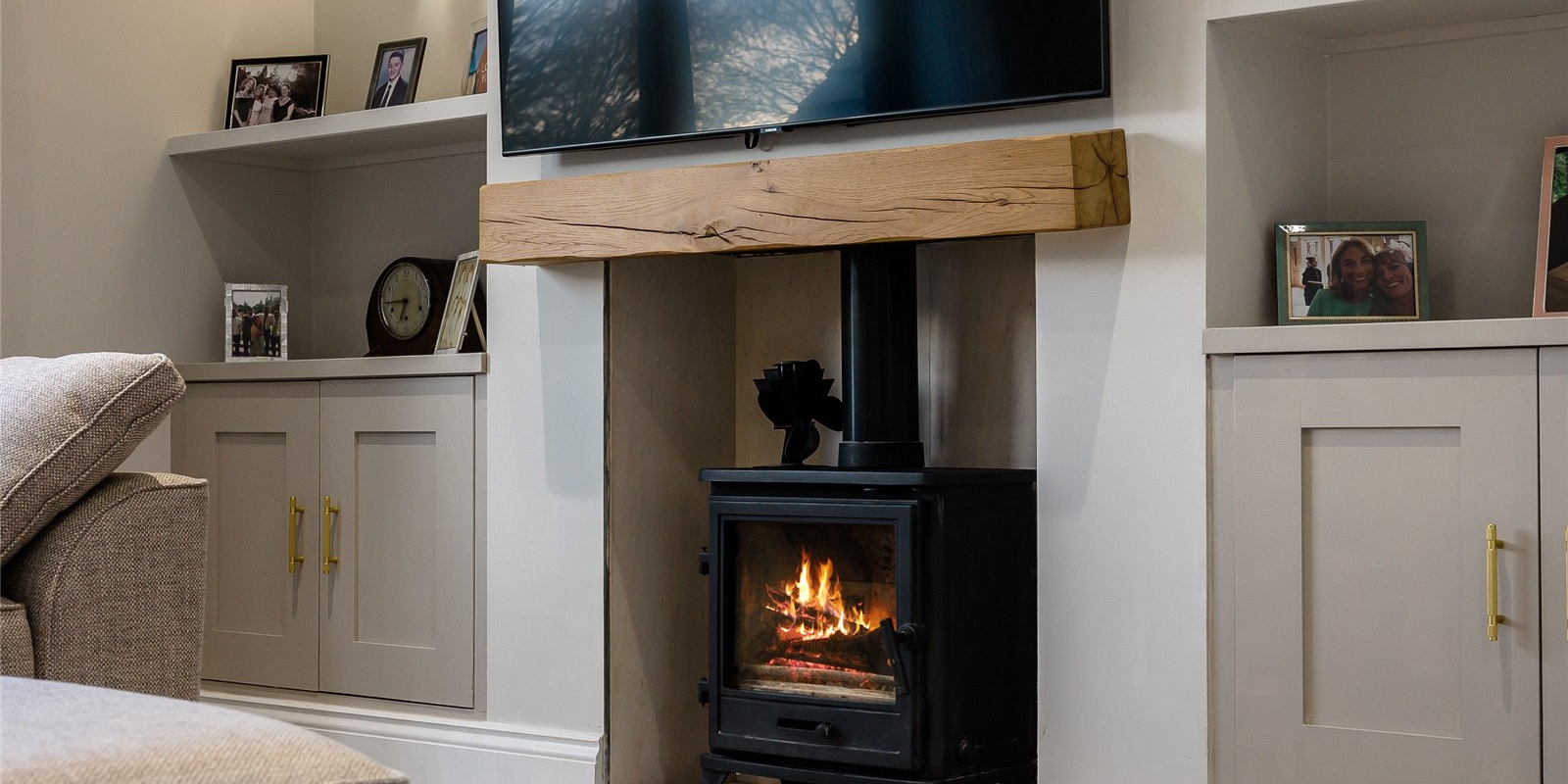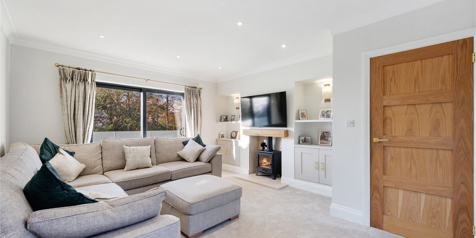 The ground floor welcomes you with a spacious reception hallway leading to a formal lounge, complete with a feature log burner for cosy evenings. At the heart of the home is a stunning open-plan kitchen and dining area, where a large central island takes centre stage perfect for entertaining or family gatherings. A practical utility room and a guest WC complete the ground floor layout.