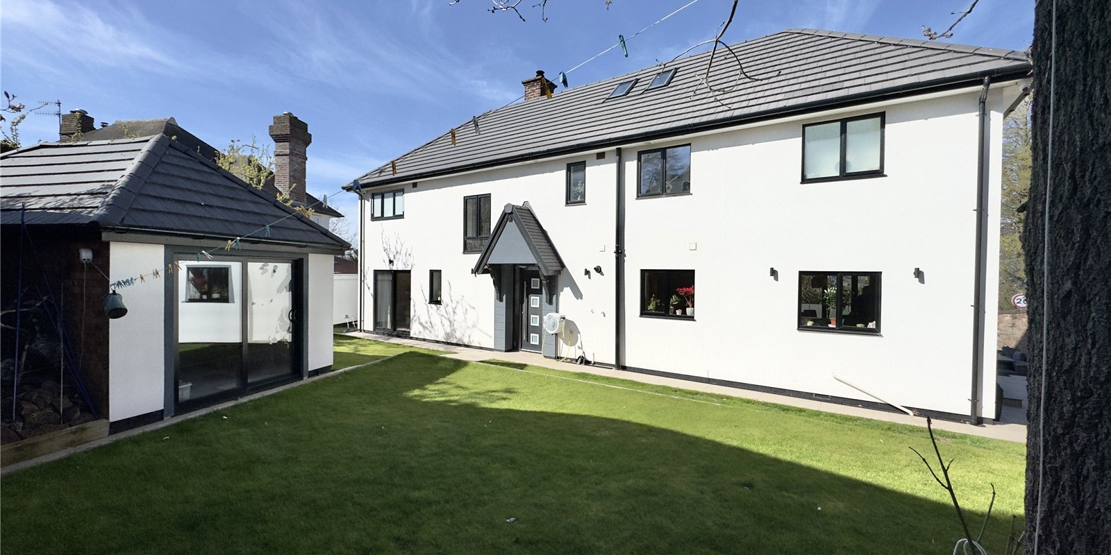 Externally, the property offers ample off-road parking via a driveway and a double garage. The beautifully maintained gardens to the front and rear provide ideal spaces for outdoor living. Additionally, a versatile detached outbuilding fully powered and lit offers excellent potential as a home office, guest room, salon, or creative studio.