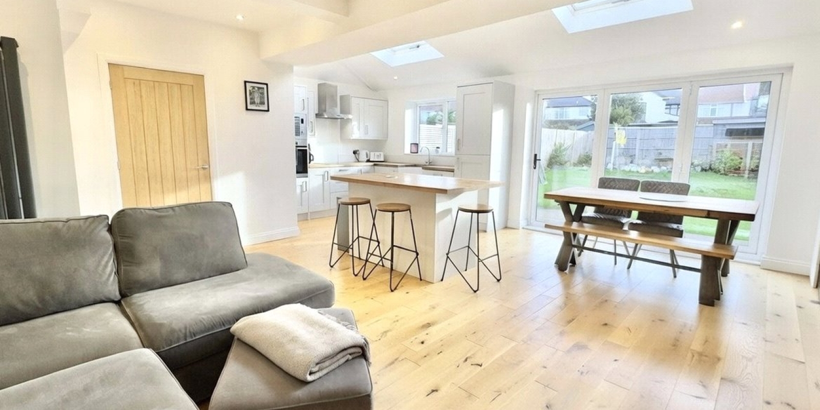 The heart of the home features an impressive open-plan kitchen and entertaining space, ideal for family gatherings and dinner parties alike. The recent extension to the rear has transformed the living experience, with stunning bifold doors creating a seamless connection between indoor and outdoor spaces. This clever design floods the interior with natural light whilst providing easy access to the private garden.