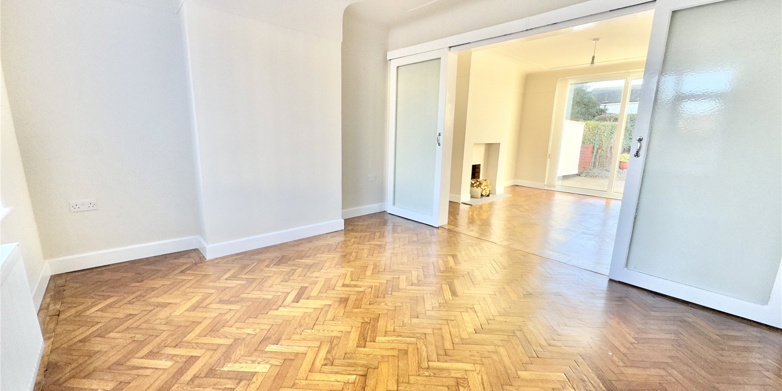 This home has been lovingly refurbished to a turnkey standard. Parquet flooring in the hallway and two reception rooms are partitioned by original sliding glass doors. The rear lounge gives access to the charming garden. There is a downstairs WC and a newly fitted kitchen with built in oven and hob and space for a dining area. The back door leads you onto the garden and large garage.